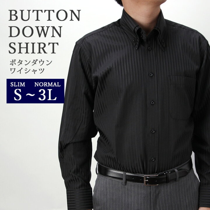 楽天市場 大人のための黒シャツ 長袖ワイシャツ 黒 ブラック ストライプ ボタンダウン メンズ 紳士用 カッターシャツ 2枚衿風 ボタンダウン ブラック 黒 ストライプ サイズ メンズ ビジネス スリム あす楽対応 ワイシャツとネクタイ専門店ビズモ